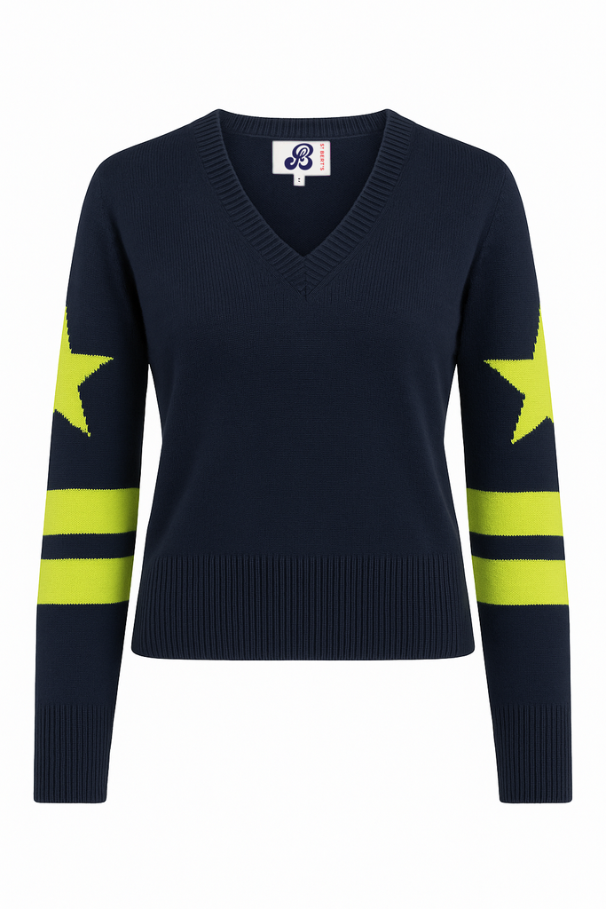 RHONDA VARSITY SWEATER – DRESS BLUE