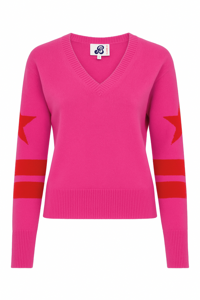 RHONDA VARSITY SWEATER – ELECTRIC PINK