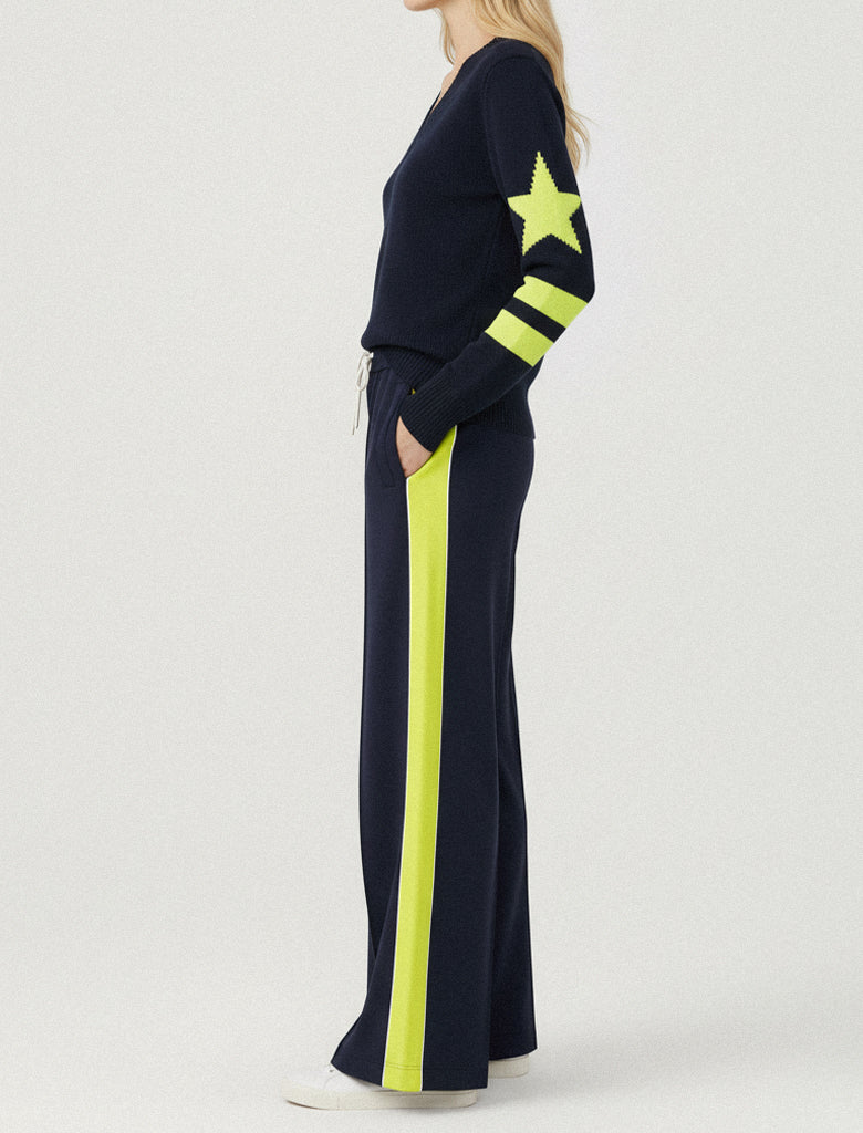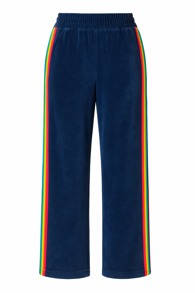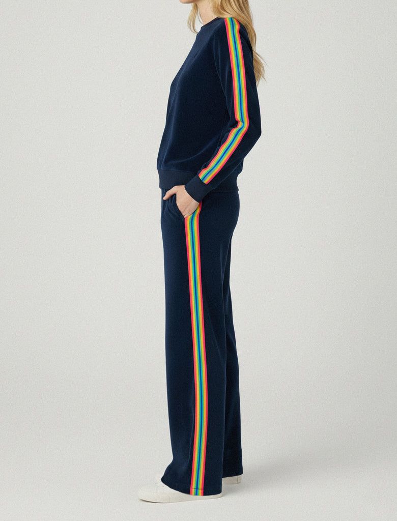 VEDA VELOUR RAINBOW TAPE WIDE LEG PANT - DRESS BLUE