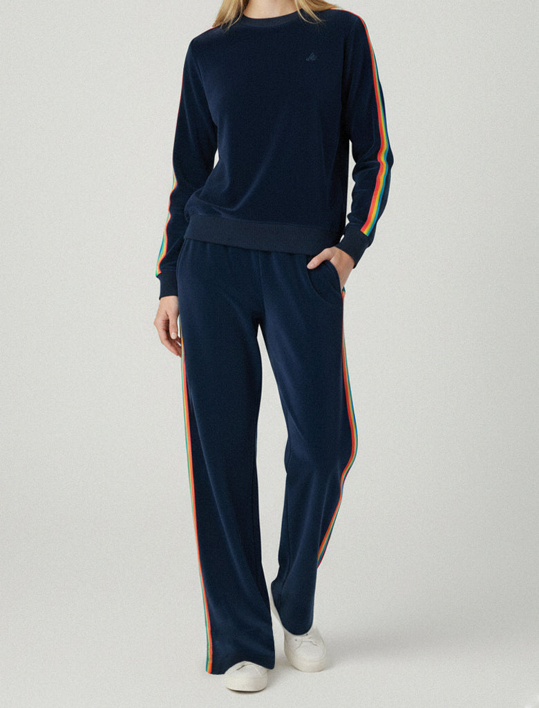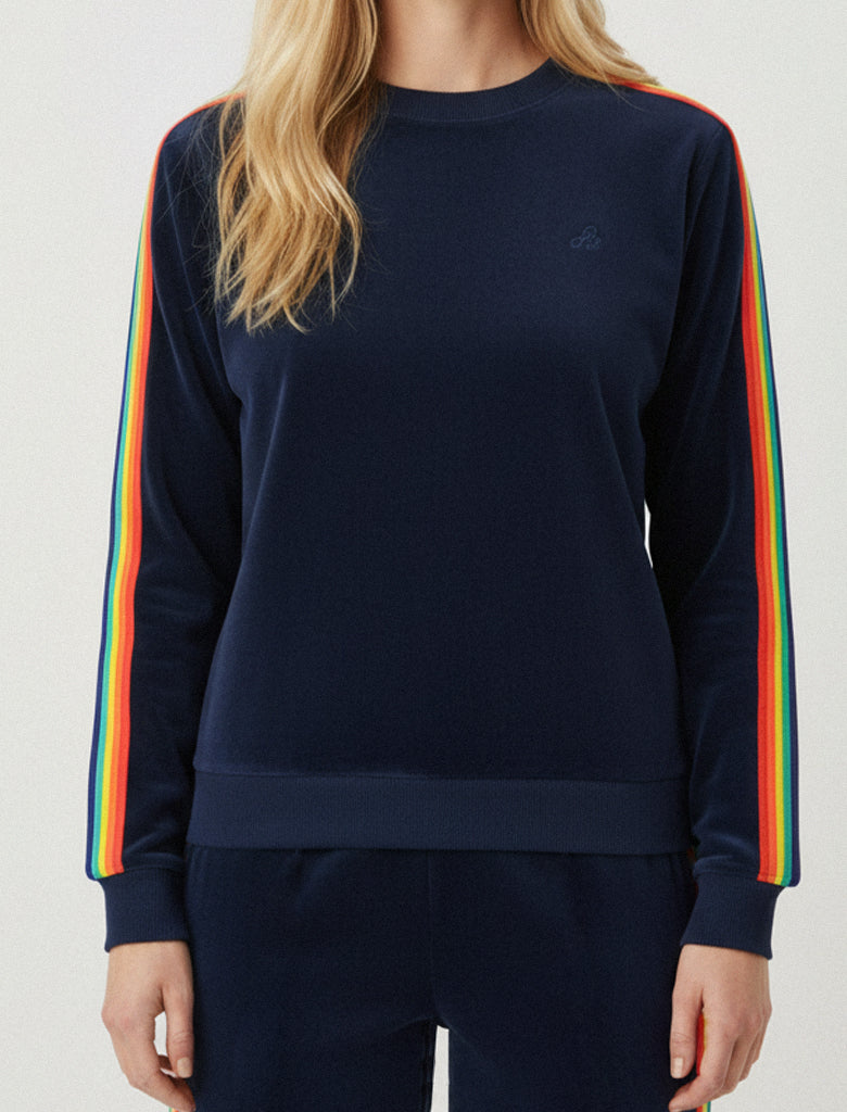 VEDA VELOUR RAINBOW TAPE SWEATSHIRT - DRESS BLUE