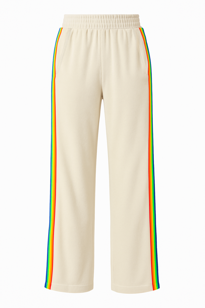VEDA VELOUR RAINBOW TAPE WIDE LEG PANT - CLAY